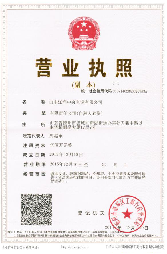 山东江润中央空调有限公司,位于山东省德州市经济开发区。德州自古**有“九达天衢”、“神京门户”之称,是全国重要的交通枢纽,交通便捷。我公司主要产品有:风机,中央空调机组,通风管道,风机盘管,铝合金等。 公司以专业的科研技术人员和先进的管理理念为动力不断改进生产工艺,提高产品品质,拥有国内先进生产线多条,拥有**标准空调检测实验室,公司产品经合肥机械研究院检验各项指标均达到或优于**标准,并顺利取得全国工业产品生产许可证,顺利通过ISO9001:2000国际质量管理体系认证。自公司建立以来严把质量关,始终保持产品质量零缺陷,客户零投诉。 我公司一贯遵循“诚信、创新求精、服务”的经营理念,不断追求品质完善和技术创新,满足市场需要和客户要求为己任,努力把自己打造成诚信为本技术精湛、服务到位、用户满意的品牌企业。公司宗旨“信誉为本,用户至上,科技创新,高质塑造品牌”,欢迎全国广大客户前来洽谈业务。