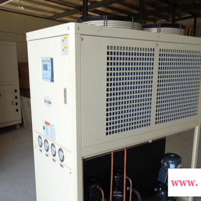 风冷式冷水机是我公司主打产品之一,将常温的水通过冷水机制冷到一定的温度以强化冷却模具或机器,作为单机使用,散热装置为内置之风扇,主要有三个相互联系的系统:制冷剂循环系统、水循环系统、电器自控系统。