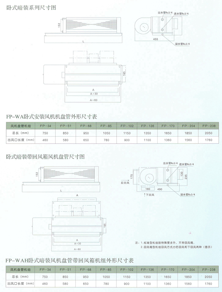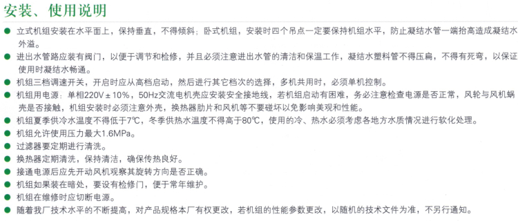 (5)温馨提示:我们的风机盘管是用于水系统的,也**是说盘管里面流动的是水。这种盘管不适合于氟系统中央空调(里面流动的是氟)