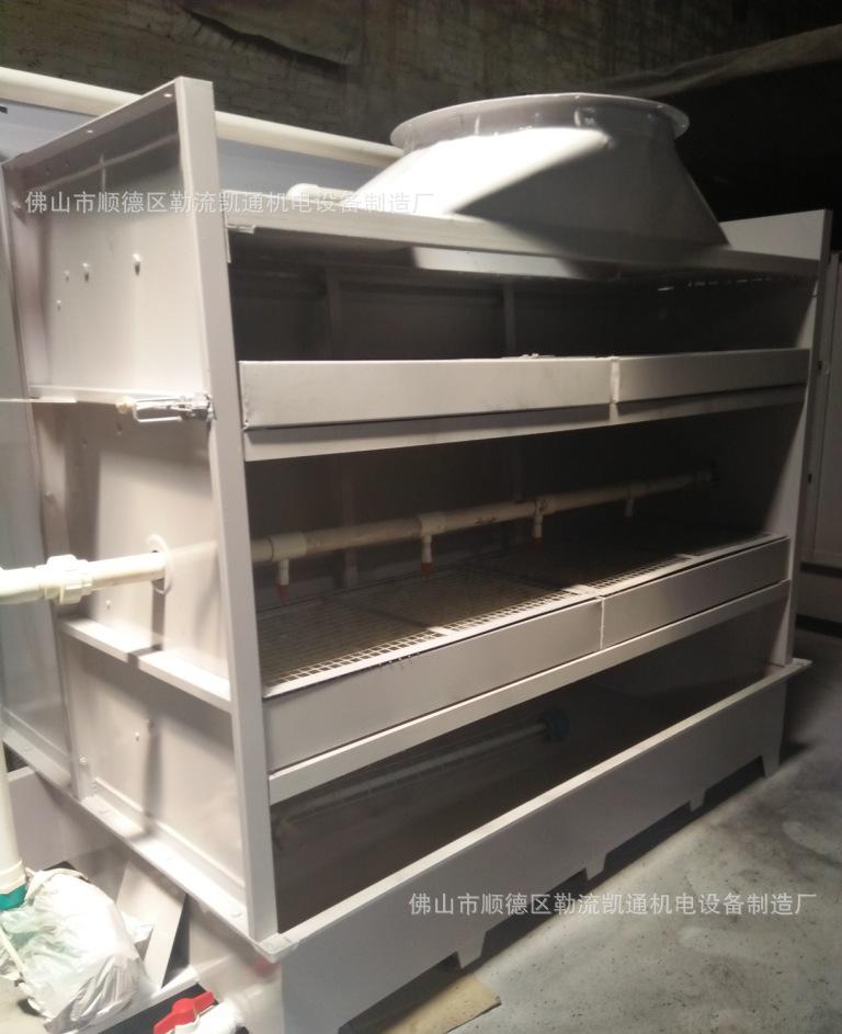 →喷油柜采用水濂式, 拼装式结构,采用螺丝连接,对接缝处采用密封胶条密封; 喷油柜底座水箱采用的材料为δ2.0mm的镀锌钢板折制焊接而成,立板采用δ1.2mm的镀锌钢板折制并用折槽加强;水濂板采用δ0.8mm的不锈钢板制作(双层水幕); 溢流水槽采用δ1.2mm镀锌钢板制作;
