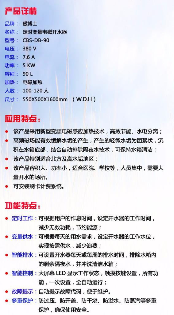 磁博士定时变量电磁开水器 CBS-DB-90 性能特点介绍
