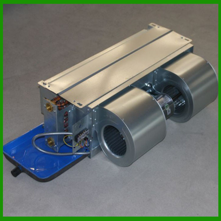 风机盘管机组简称风机盘管。它是由小型风机、电动机和盘管(空气换热器)等组成的空调系统末端装置之一。盘管管内流过冷冻水或热水时与管外空气换热,使空气被冷却,除湿或加热来调节室内的空气参数。它是常用的供冷、供热末端装置。