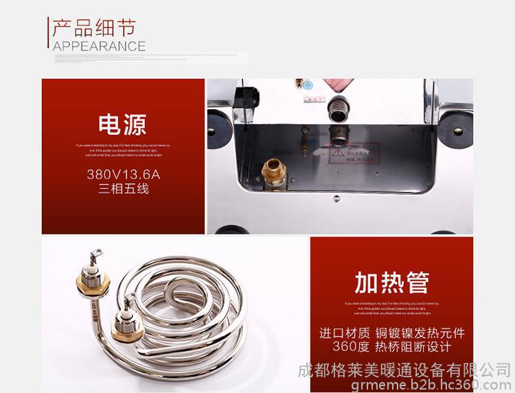 产品材质:不锈钢壳体,钢琴烤漆;加热功率:9KW;电压:380V;龙头数量:双龙头;