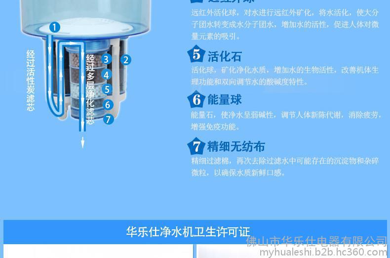 华乐仕饮水机,可有效过滤自来水中的杂质、铁锈以及有害重金属等,使自来水更加卫生、安全。多年不更换的不锈钢水管,长满了锈渍;各小区的水箱,多年不清洗,红虫细菌等不断滋生;经过漫长的水管及水箱,自来水已经严重变质。您需要净水器,再次过滤。华乐仕饮水机,帮您有效净化自来水。同时,华乐仕饮水机,可以矿化水质,保留人体所需各种微量元素及矿物质,不仅改善口感,而且确保您的饮水健康。