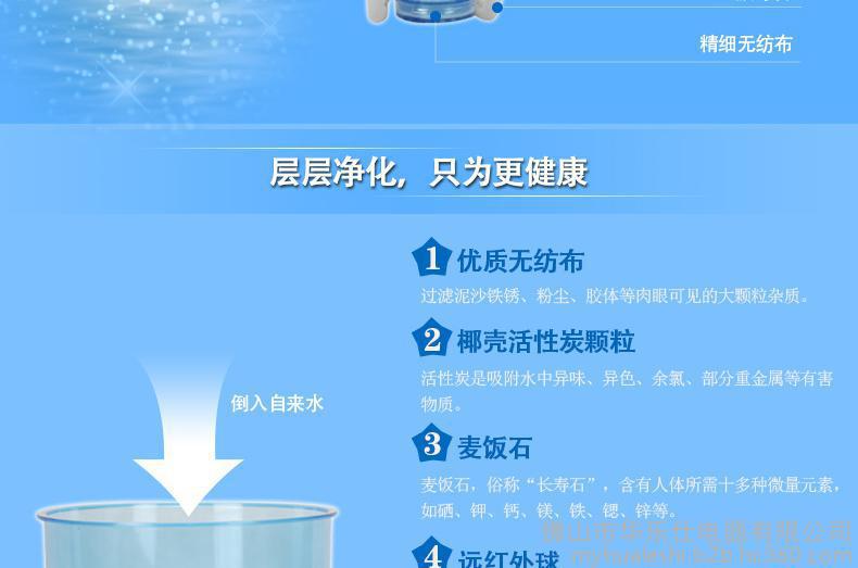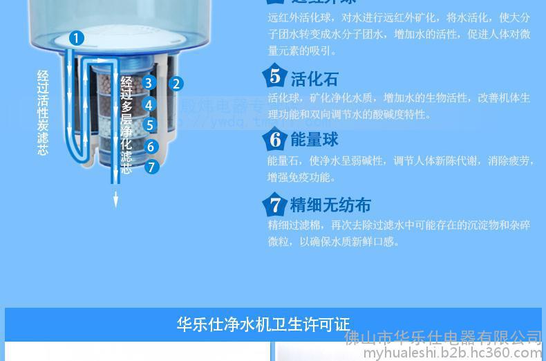 华乐仕饮水机,自来水经过滤后,可有效去除余氯、铁锈、泥沙以及有害重金属等,同时经过矿化、活化后,可获得口感较好的矿物质水。