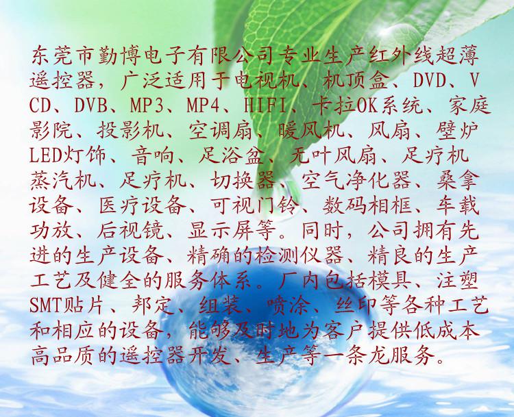 本网页所展示的有关【供应温控遥控器 温控器遥控器 红外线超薄遥控器 优良品质_遥控器_东莞市勤博电子有限公司】的信息/图片/参数等由简塑制品网的会员【东莞市勤博电子有限公司】提供,由简塑制品网会员【东莞市勤博电子有限公司】自行对信息/图片/参数等的真实性、准确性和合法性负责,本平台(本网站)仅提供展示服务,请谨慎交易,因交易而产生的法律关系及法律纠纷由您自行协商解决,本平台(本网站)对此不承担任何责任。您在本网页可以浏览【供应温控遥控器 温控器遥控器 红外线超薄遥控器 优良品质_遥控器_东莞市勤博电子有限公司】有关的信息/图片/价格等及提供【供应温控遥控器 温控器遥控器 红外线超薄遥控器 优良品质_遥控器_东莞市勤博电子有限公司】的商家公司简介、联系方式等信息。