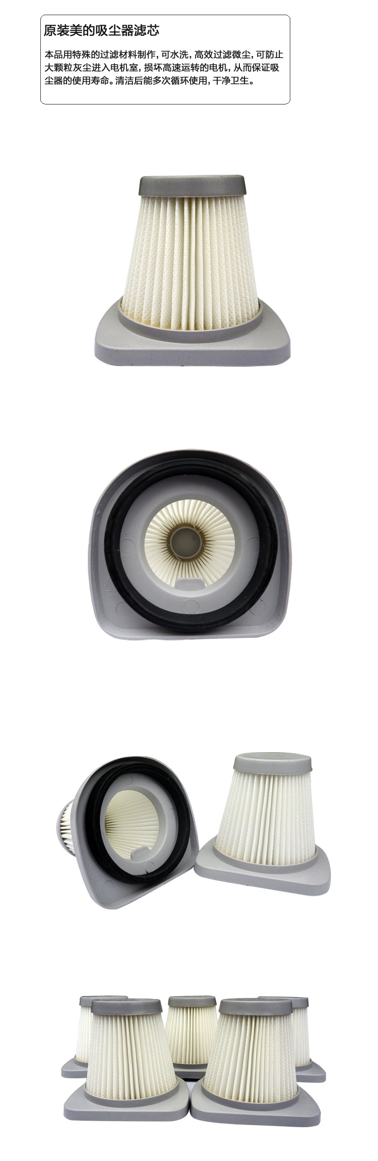 本品用特殊的过滤材料制作,高效过滤微尘,可防止大颗粒灰尘进入电机室,损坏高速运转的电机,从而保证吸尘器的使用寿命。清洁后能多次循环使用,干净卫生。