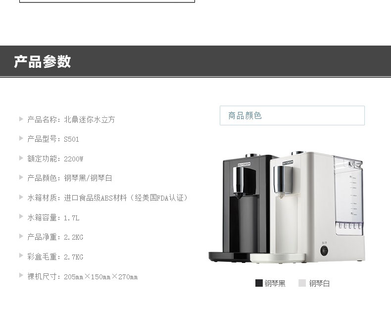 | 产品名称 | 北鼎单热饮水机(迷你水立方) |