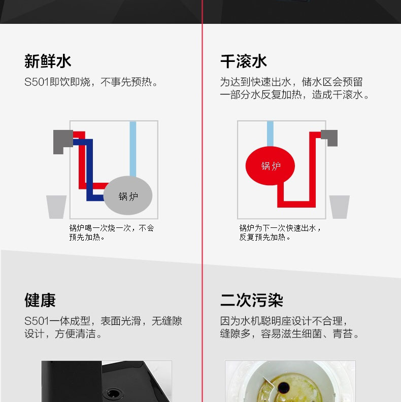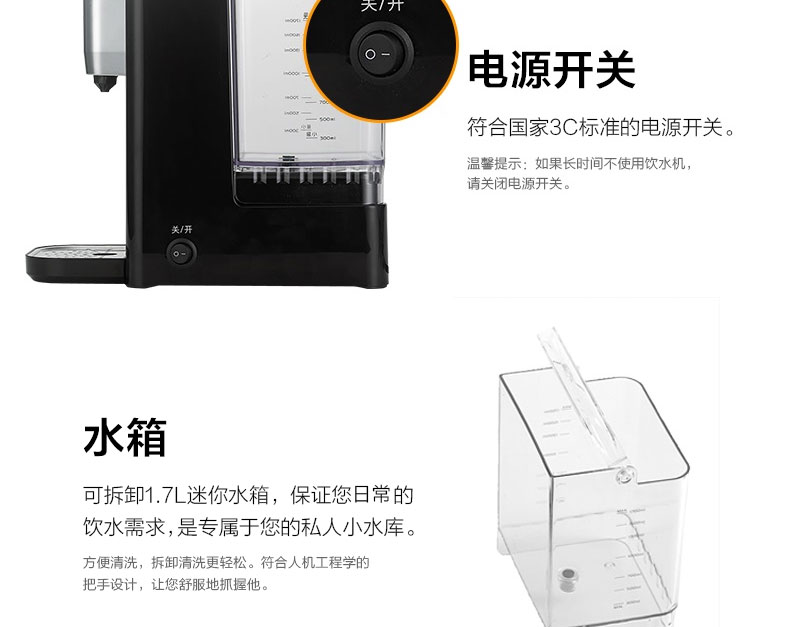 Buydeem/北鼎 S503黑白两色小型台式饮水机家用即热
