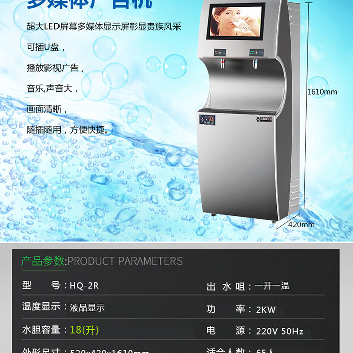 本网页所展示的有关【鸿泉HQ-2R 豪华商用不锈钢多媒体广告饮水机_饮水机_广东鸿泉节能设备有限公司】的信息/图片/参数等由简塑制品网的会员【广东鸿泉节能设备有限公司】提供,由简塑制品网会员【广东鸿泉节能设备有限公司】自行对信息/图片/参数等的真实性、准确性和合法性负责,本平台(本网站)仅提供展示服务,请谨慎交易,因交易而产生的法律关系及法律纠纷由您自行协商解决,本平台(本网站)对此不承担任何责任。您在本网页可以浏览【鸿泉HQ-2R 豪华商用不锈钢多媒体广告饮水机_饮水机_广东鸿泉节能设备有限公司】有关的信息/图片/价格等及提供【鸿泉HQ-2R 豪华商用不锈钢多媒体广告饮水机_饮水机_广东鸿泉节能设备有限公司】的商家公司简介、联系方式等信息。