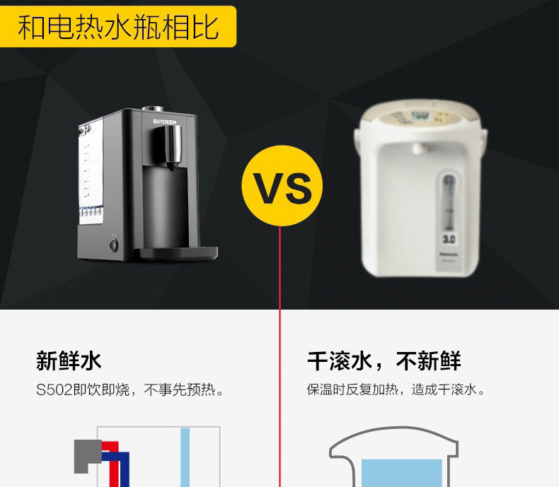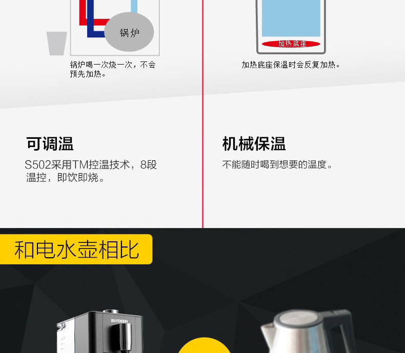Buydeem/北鼎 S503黑白两色小型台式饮水机家用即热