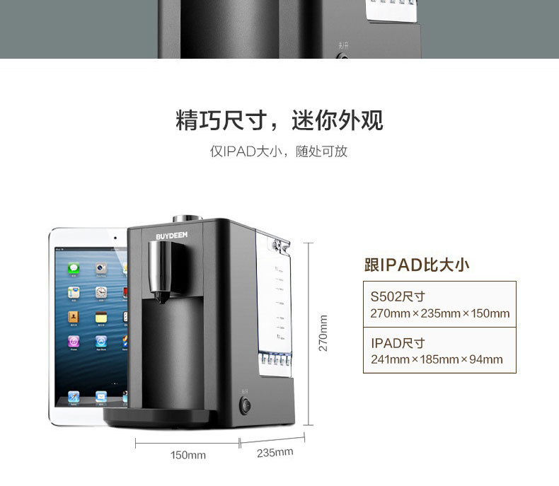 Buydeem/北鼎 S502小型台式饮水机家用迷你型即热式
