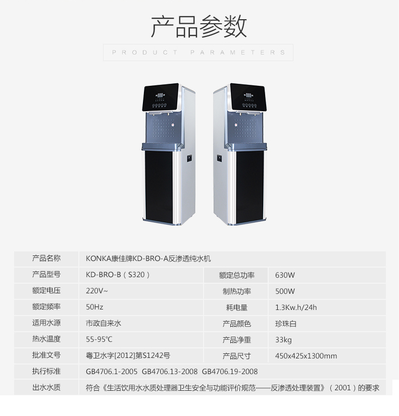 本网页所展示的有关【康佳KD-BRO-A(S320) 饮水机_饮水机_深圳市康佳智能电器科技有限公司】的信息/图片/参数等由简塑制品网的会员【深圳市康佳智能电器科技有限公司】提供,由简塑制品网会员【深圳市康佳智能电器科技有限公司】自行对信息/图片/参数等的真实性、准确性和合法性负责,本平台(本网站)仅提供展示服务,请谨慎交易,因交易而产生的法律关系及法律纠纷由您自行协商解决,本平台(本网站)对此不承担任何责任。您在本网页可以浏览【康佳KD-BRO-A(S320) 饮水机_饮水机_深圳市康佳智能电器科技有限公司】有关的信息/图片/价格等及提供【康佳KD-BRO-A(S320) 饮水机_饮水机_深圳市康佳智能电器科技有限公司】的商家公司简介、联系方式等信息。