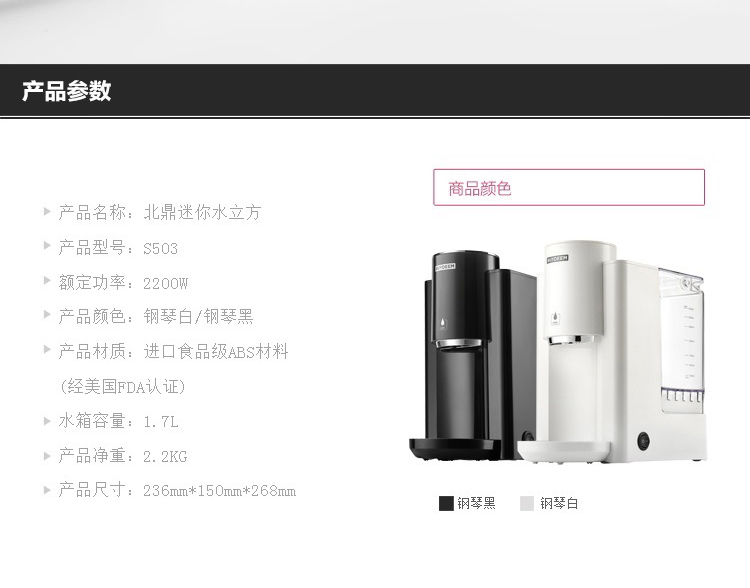 | 产品名称 | 北鼎单热饮水机(迷你水立方) |
