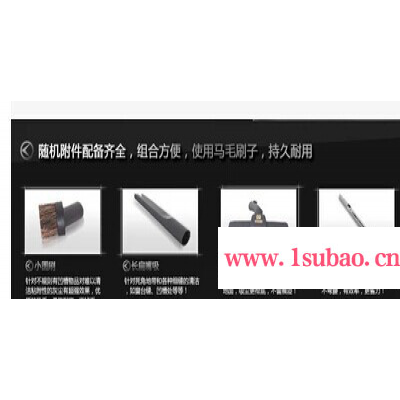 6 配:软管组件,伸缩管 ,吸尘扒头,地板刷,扁刷,小圆刷,扁吸嘴,吸尘袋。