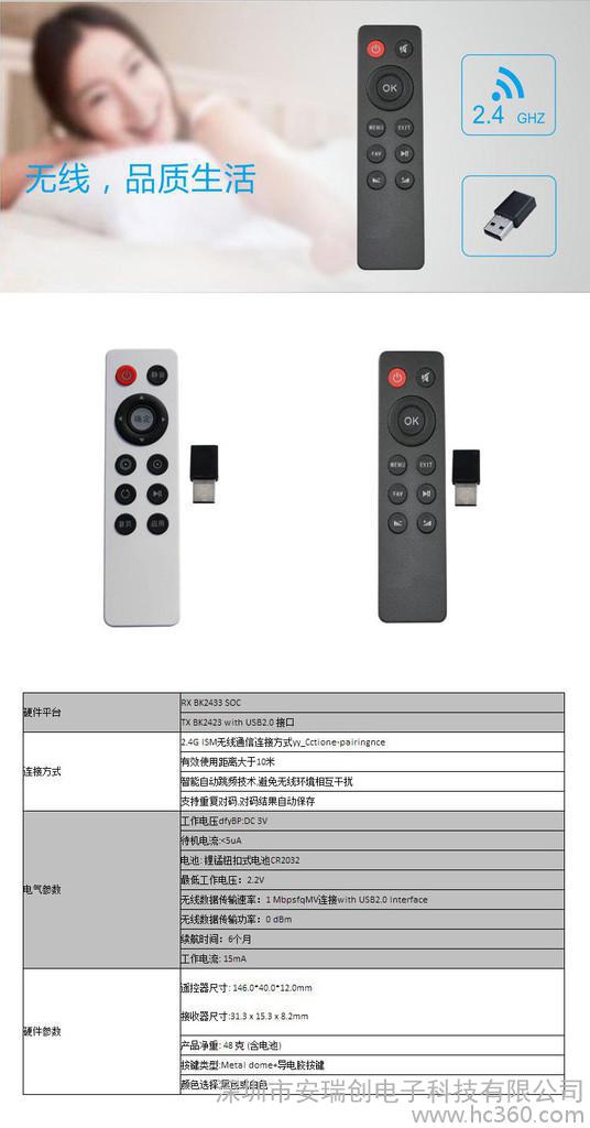 智能飞鼠遥控器:智能遥控器是由本公司自主研发的一款多功能学习型红外遥控器,它是一种符合现代人追求简约生活理念的新概念产品,它将各种普通遥控器常用按键进行精心提取后并融合为一体,通过独有的智能控制技术,使用户能同时轻松的操作包括空调﹑电视机﹑影碟机﹑录像机﹑**﹑电脑﹑激光唱机以及音响功放等所有红外遥控的家用电器。使您只需要一个遥控器**可以控制几乎所有的家电,从而实现了“一机在手,遥控天下”的梦想。主要用于:安卓**, 安卓电视机, Android Box, Android TV, OTT**,电视机,智能电视机,Philips**,华为秘盒,乐视**,乐视OTT**,MINIX**等