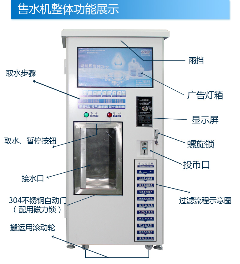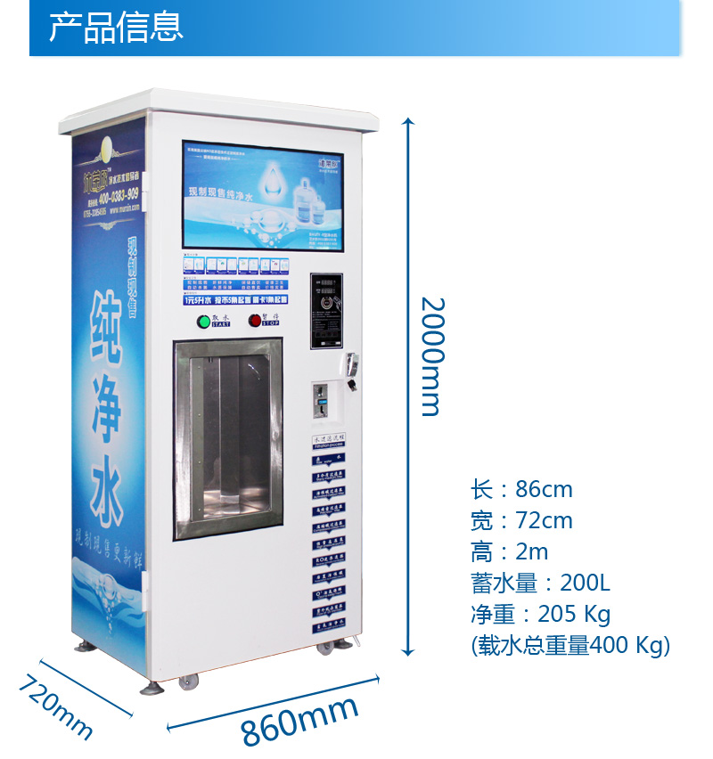 售水机的出现,更是未来市场的一个商机,其核心;减少烦琐开支,缩小流通成本。其目的;节省客户成本,降低消费差价。自动售水机犹如一个微型资助超市,免人工,免店面,占地面积只有1平方米。