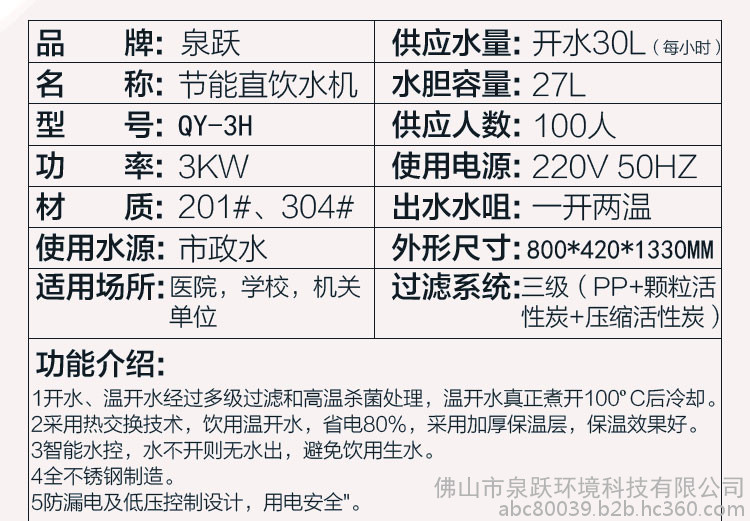 本网页所展示的有关【学校工厂办公室餐饮机场不锈钢节能商用多功能温热过滤直饮立式饮水机_饮水机_佛山市泉跃环境科技有限公司】的信息/图片/参数等由简塑制品网的会员【佛山市泉跃环境科技有限公司】提供,由简塑制品网会员【佛山市泉跃环境科技有限公司】自行对信息/图片/参数等的真实性、准确性和合法性负责,本平台(本网站)仅提供展示服务,请谨慎交易,因交易而产生的法律关系及法律纠纷由您自行协商解决,本平台(本网站)对此不承担任何责任。您在本网页可以浏览【学校工厂办公室餐饮机场不锈钢节能商用多功能温热过滤直饮立式饮水机_饮水机_佛山市泉跃环境科技有限公司】有关的信息/图片/价格等及提供【学校工厂办公室餐饮机场不锈钢节能商用多功能温热过滤直饮立式饮水机_饮水机_佛山市泉跃环境科技有限公司】的商家公司简介、联系方式等信息。