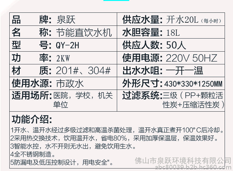 本网页所展示的有关【泉跃2H 学校工厂办公室餐饮机场不锈钢节能商用多功能温热过滤直饮立式饮水机_饮水机_佛山市泉跃环境科技有限公司】的信息/图片/参数等由简塑制品网的会员【佛山市泉跃环境科技有限公司】提供,由简塑制品网会员【佛山市泉跃环境科技有限公司】自行对信息/图片/参数等的真实性、准确性和合法性负责,本平台(本网站)仅提供展示服务,请谨慎交易,因交易而产生的法律关系及法律纠纷由您自行协商解决,本平台(本网站)对此不承担任何责任。您在本网页可以浏览【泉跃2H 学校工厂办公室餐饮机场不锈钢节能商用多功能温热过滤直饮立式饮水机_饮水机_佛山市泉跃环境科技有限公司】有关的信息/图片/价格等及提供【泉跃2H 学校工厂办公室餐饮机场不锈钢节能商用多功能温热过滤直饮立式饮水机_饮水机_佛山市泉跃环境科技有限公司】的商家公司简介、联系方式等信息。