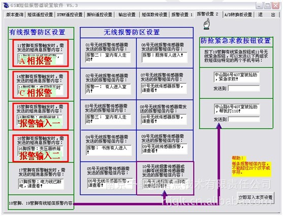 本设备可以对三相四线进行实时监控,三相交流电中的任何一路相线断电时,GSM报警主机均会立即通过**或联通的GSM移动通信网络,向六部手机发送报警**过手机短信(SMS)可以对本设备的六路继电器进行远程遥控,以实现远程短信遥控开关电器设备的功能;本设备有两路有线开关量报警输入,可以起到防盗报警作用;同时具有短信单次定时自动控制开关和每日定时自动控制开关功能。