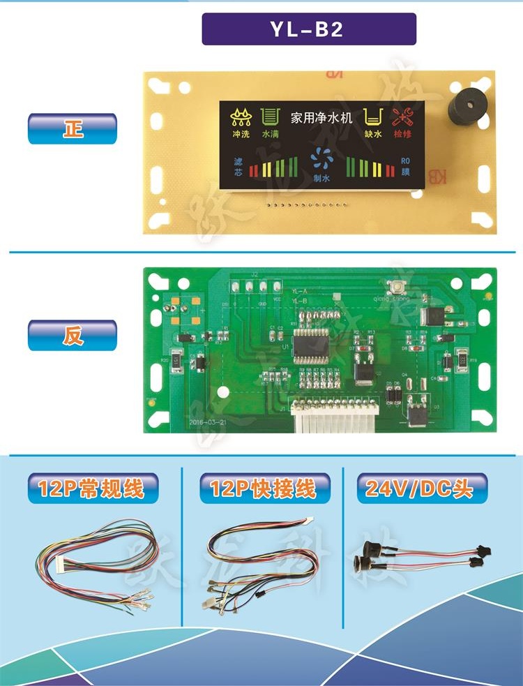 2.产品可以连接净水器中的增压泵、进水阀、冲洗阀、高压开关、低压开关和电源,具备端子母头与各个组件进行直接对接,无需焊接,组装方便可靠,轻轻松松**可以组成完整的净水器控制系统。