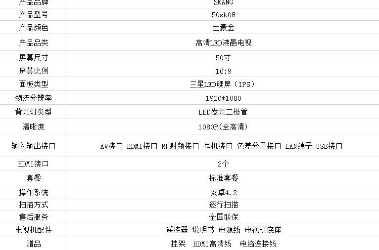 | 颜色 | 50寸LED液晶电视(网络版) |
