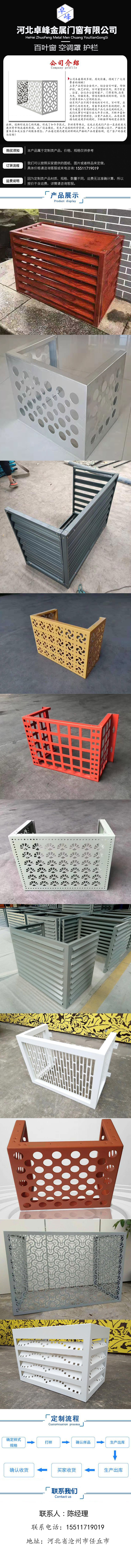 本网页所展示的有关【卓峰门窗 锌钢空调罩 金属空调罩 铝单板空调罩 空调罩厂家_空调_河北卓峰金属门窗有限公司】的信息/图片/参数等由简塑制品网的会员【河北卓峰金属门窗有限公司】提供,由简塑制品网会员【河北卓峰金属门窗有限公司】自行对信息/图片/参数等的真实性、准确性和合法性负责,本平台(本网站)仅提供展示服务,请谨慎交易,因交易而产生的法律关系及法律纠纷由您自行协商解决,本平台(本网站)对此不承担任何责任。您在本网页可以浏览【卓峰门窗 锌钢空调罩 金属空调罩 铝单板空调罩 空调罩厂家_空调_河北卓峰金属门窗有限公司】有关的信息/图片/价格等及提供【卓峰门窗 锌钢空调罩 金属空调罩 铝单板空调罩 空调罩厂家_空调_河北卓峰金属门窗有限公司】的商家公司简介、联系方式等信息。
