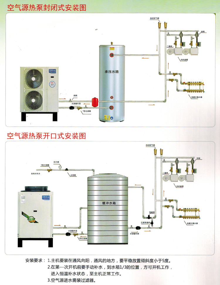 空气源热泵系统通过提取空气中的低温热能,利用压缩机的压缩使低温热能转变为高温热源,并以此来实现供