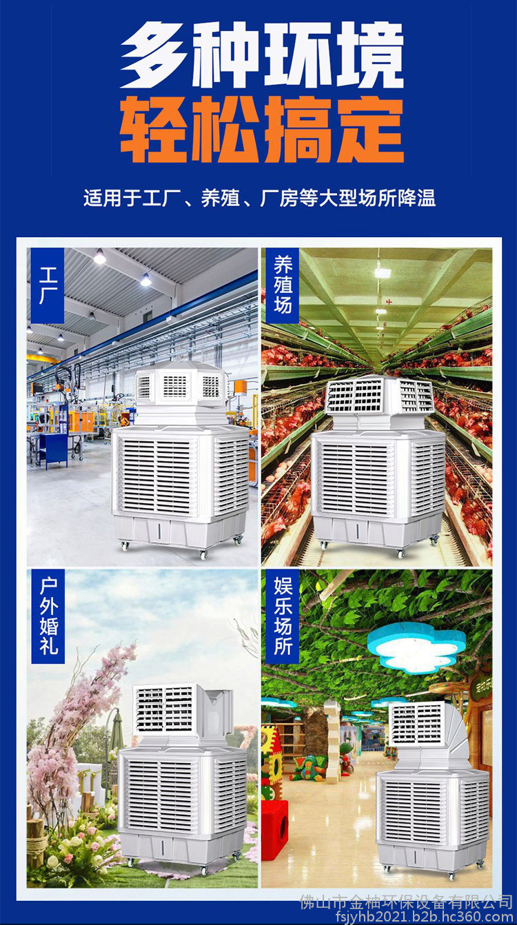 3、有发热设备或高温的生产场所,如:机械加工、注塑、电镀、冶金、印刷、食品加工、玻璃、家电等生产车间:需要门户开放的商场、超市、游乐场、娱乐场、候车室;适用于农业科研培植中心或基地。