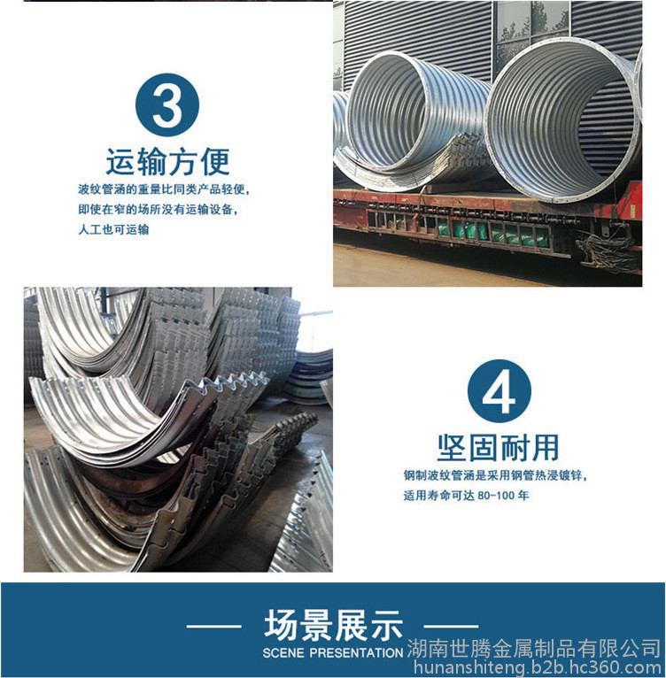 本网页所展示的有关【钢波纹涵管钢制波纹管涵拼接波纹管PVC硬管单壁金属波纹涵管_PVC 管_湖南世腾金属制品有限公司】的信息/图片/参数等由简塑制品网的会员【湖南世腾金属制品有限公司】提供,由简塑制品网会员【湖南世腾金属制品有限公司】自行对信息/图片/参数等的真实性、准确性和合法性负责,本平台(本网站)仅提供展示服务,请谨慎交易,因交易而产生的法律关系及法律纠纷由您自行协商解决,本平台(本网站)对此不承担任何责任。您在本网页可以浏览【钢波纹涵管钢制波纹管涵拼接波纹管PVC硬管单壁金属波纹涵管_PVC 管_湖南世腾金属制品有限公司】有关的信息/图片/价格等及提供【钢波纹涵管钢制波纹管涵拼接波纹管PVC硬管单壁金属波纹涵管_PVC 管_湖南世腾金属制品有限公司】的商家公司简介、联系方式等信息。
