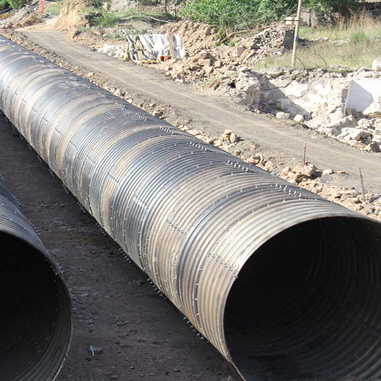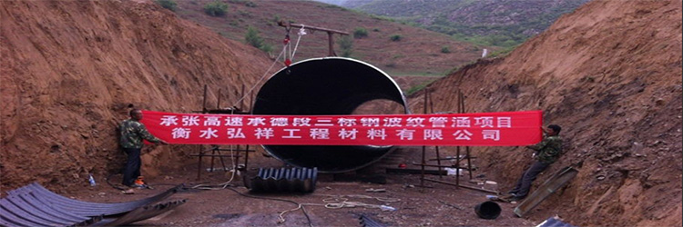 拼装波纹管涵是由多片波形板用螺栓拼接而成,具有板片薄,质量轻,便于运输存放,施工工艺简单,现场安装方便,解决北方寒冷地区对桥梁和管涵的结构破坏问题,组装快速,工期短等优点。进行纵向连接成型。连接螺栓采用M20,8.8级高强度螺栓及弧形垫圈,边缝及螺栓用密封胶处理,钢板表面采用热浸镀锌,组装完成后喷涂沥青。洞口选用铺砌及护坡采用M7.5浆砌片石铺砌或采用钢筋混凝土浇筑洞口。钢波纹涵管是一种柔性结构,它建成后与周围土体形成一种组合结构,共同受力,波纹涵管楔形部及两侧的回填土很关键,如果回填不密实或楔形部中空或局部有大石块直接作用于管体,将出现局部有较大变形或局部凸起,存在安全隐患,严重的可能会造成质量事故,所以波纹涵管两侧及楔形部的回填土在施工中要严格控制。
