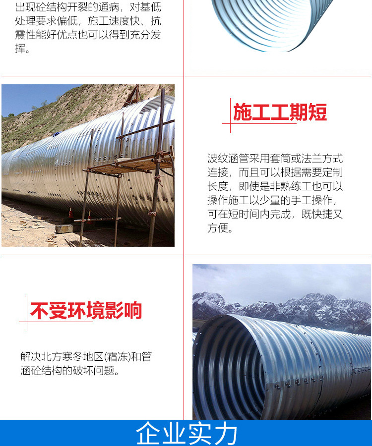 那么钢波纹管涵的优点呢?下面**让我来给大家一一的介绍一下: