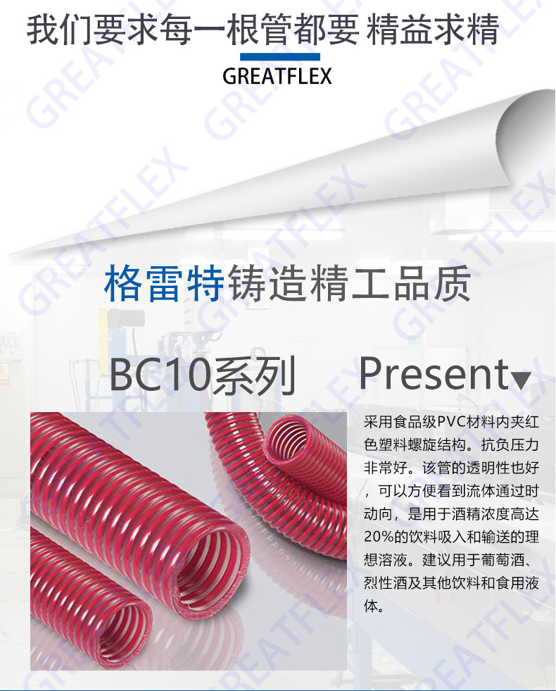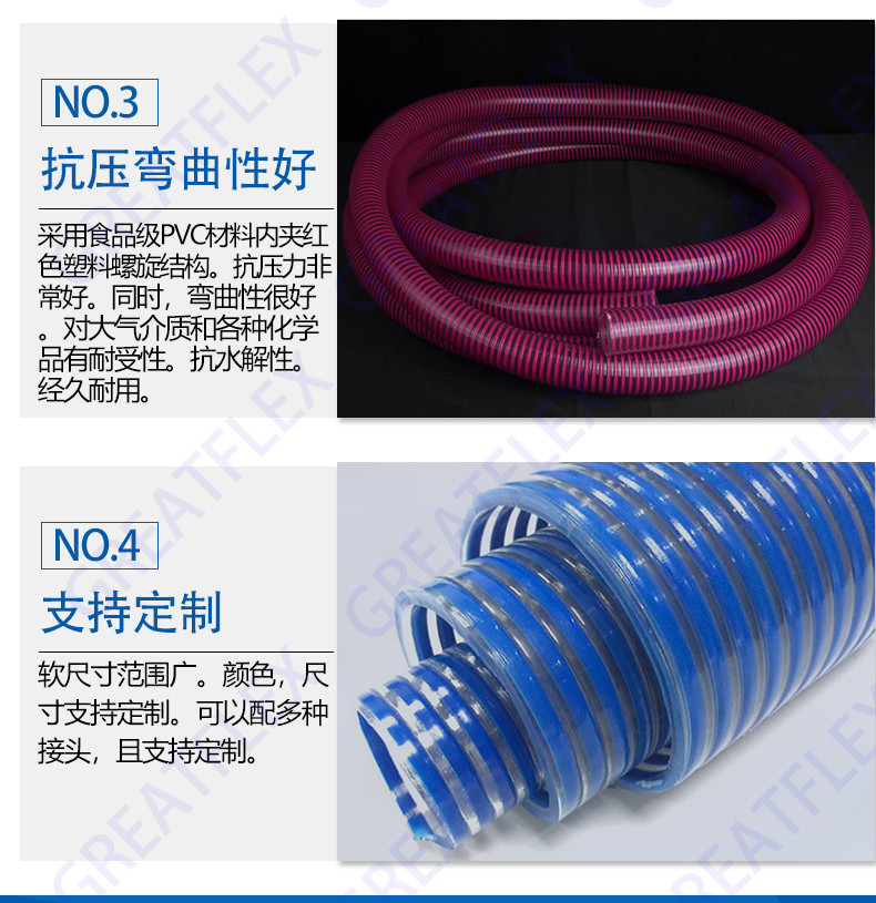 GREATFLEX食品级红色透明塑料管PVC塑筋管波纹管PS10