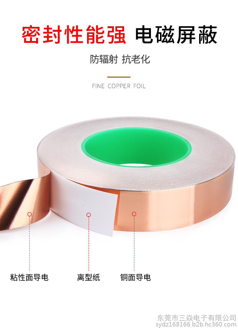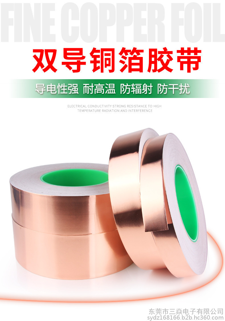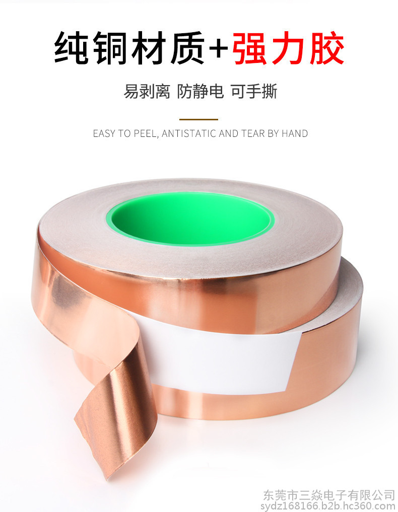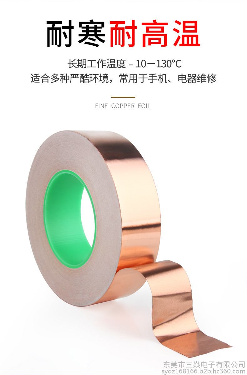 是一种金属胶带,主要应用于电磁屏蔽,分电信号屏蔽和磁信号屏蔽两种,电信号屏蔽主要是依靠铜本身优异的导电性能,而磁屏蔽则需要铜箔胶带的胶面导电物质"镍"来达到磁屏蔽的作用,因而被广泛应用于手机,笔记电脑和其他数码产品之中。目前市场上常用到的铜箔胶带的一般检验性能如下:材质:CU 99.98%