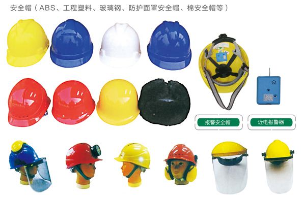 材质分类:ABS、工程塑料、玻璃钢、防护面罩安全帽。棉安全帽等