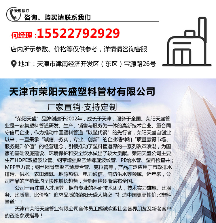 本网页所展示的有关【HDPE给水管 PE实壁管 饮用水pe管件 农业灌溉管_PE 管_天津市荣阳天盛塑料管材有限公司】的信息/图片/参数等由简塑制品网的会员【天津市荣阳天盛塑料管材有限公司】提供,由简塑制品网会员【天津市荣阳天盛塑料管材有限公司】自行对信息/图片/参数等的真实性、准确性和合法性负责,本平台(本网站)仅提供展示服务,请谨慎交易,因交易而产生的法律关系及法律纠纷由您自行协商解决,本平台(本网站)对此不承担任何责任。您在本网页可以浏览【HDPE给水管 PE实壁管 饮用水pe管件 农业灌溉管_PE 管_天津市荣阳天盛塑料管材有限公司】有关的信息/图片/价格等及提供【HDPE给水管 PE实壁管 饮用水pe管件 农业灌溉管_PE 管_天津市荣阳天盛塑料管材有限公司】的商家公司简介、联系方式等信息。