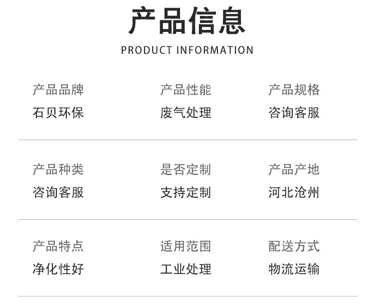 本网页所展示的有关【UV光氧净化器 废气处理设备 UV光解净化器_空气净化器_河北石贝环保设备有限公司】的信息/图片/参数等由简塑制品网的会员【河北石贝环保设备有限公司】提供,由简塑制品网会员【河北石贝环保设备有限公司】自行对信息/图片/参数等的真实性、准确性和合法性负责,本平台(本网站)仅提供展示服务,请谨慎交易,因交易而产生的法律关系及法律纠纷由您自行协商解决,本平台(本网站)对此不承担任何责任。您在本网页可以浏览【UV光氧净化器 废气处理设备 UV光解净化器_空气净化器_河北石贝环保设备有限公司】有关的信息/图片/价格等及提供【UV光氧净化器 废气处理设备 UV光解净化器_空气净化器_河北石贝环保设备有限公司】的商家公司简介、联系方式等信息。