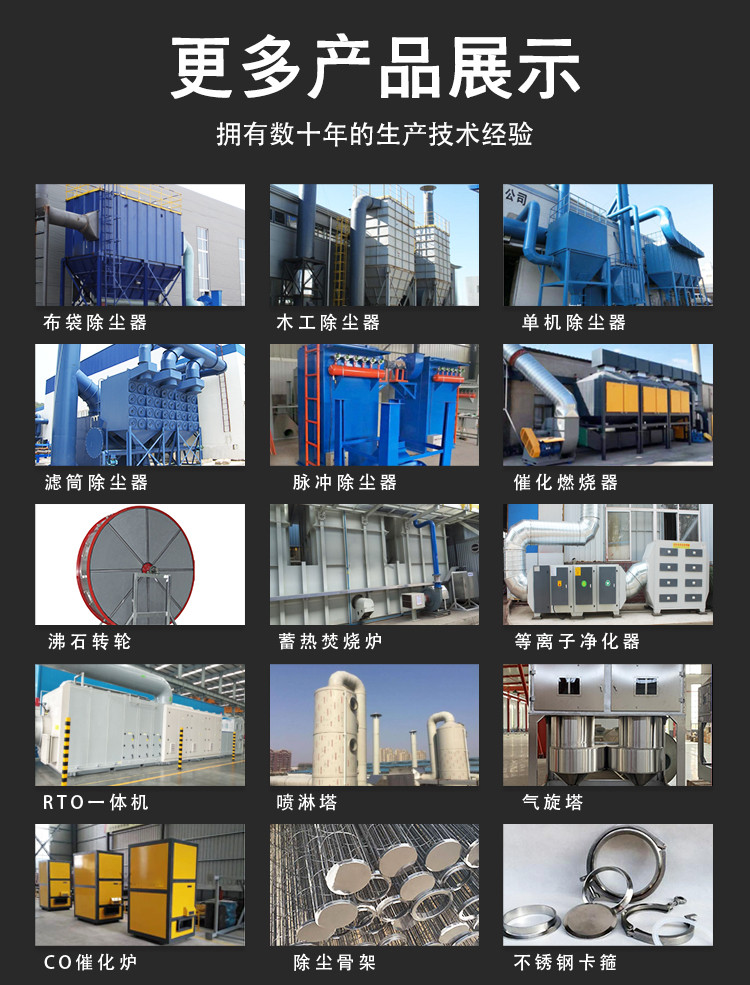 主营:布袋除尘器,催化燃烧,废气处理设备,沸石转轮,焚烧