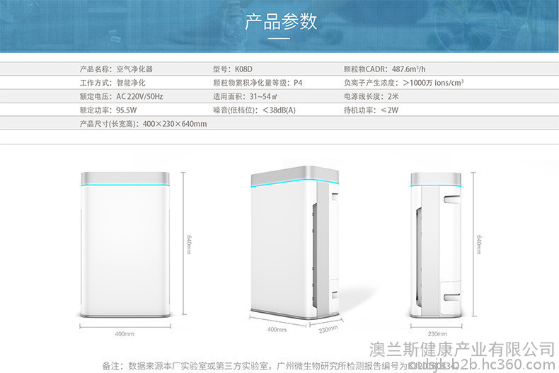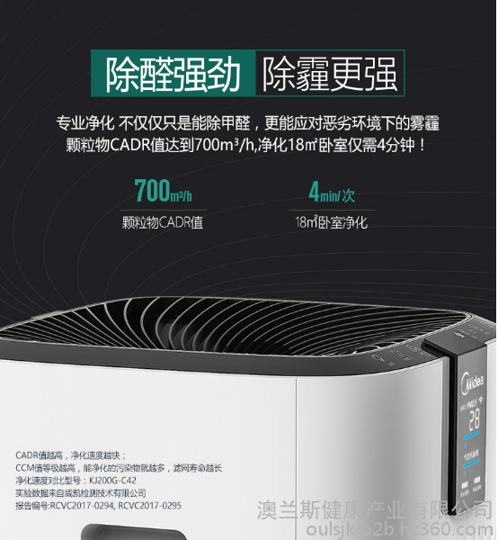 颗粒物累积净化量等级:P4 负离子产生浓度:>1000万 ions/cm3