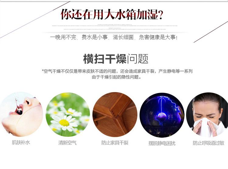 2.先进的超声波技术,每秒震荡240万次,产生极其细小的水雾,将溶于水中的精油分子完整地释放于空气之中,令其更加容易为人体所吸收。水氧喷雾在加湿空气的同时还可产生大量的负离子,让您同时享受森林浴。