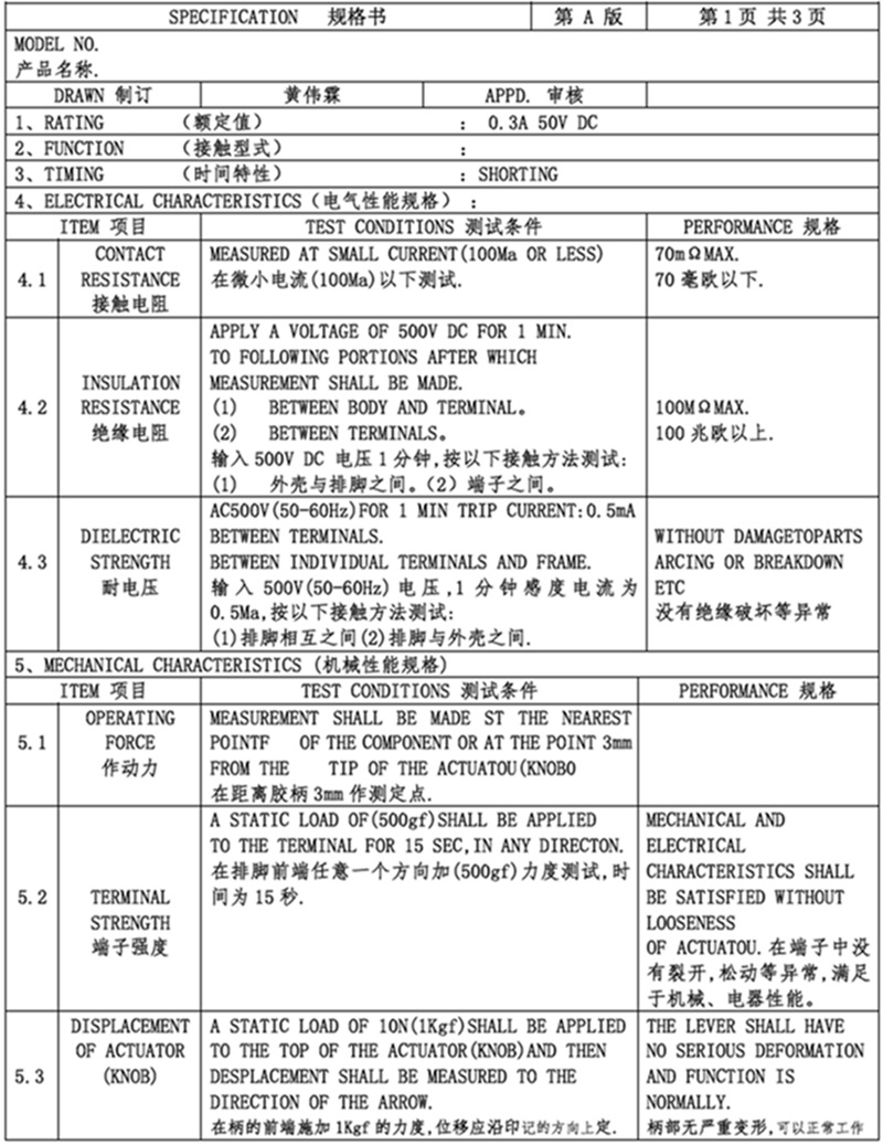 要求:(1)接触电阻不能超于200mΩ(2)其它、满足于机械、电器性能.
