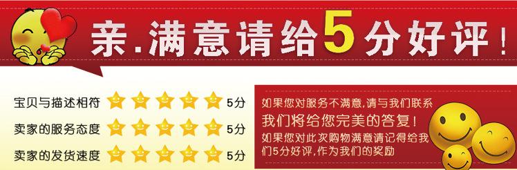 2、您收到商品后,如果有任何问题或疑问,都请及时和我们联系,我们会尽力做到让您满意。出现问题请不要武断的给我们中评或者差评,这样不能解决问题,也不会挽回您的损失!