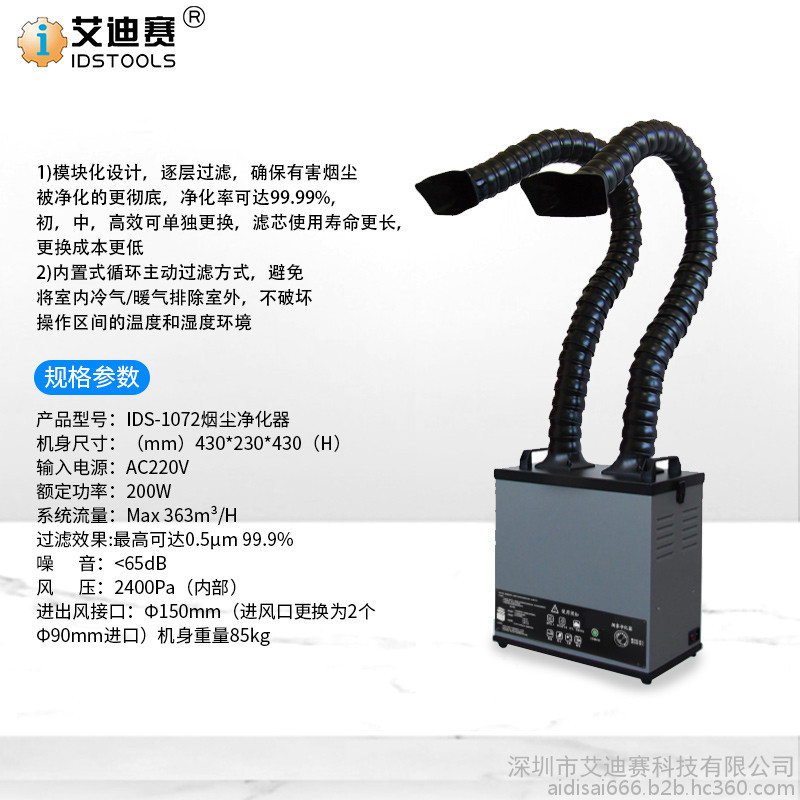 本网页所展示的有关【艾迪赛IDS-1072立式焊烟雾净化器工业焊接电焊烟尘净化器焊锡烟雾旱烟收集除尘器_空气净化器_深圳市艾迪赛科技有限公司】的信息/图片/参数等由简塑制品网的会员【深圳市艾迪赛科技有限公司】提供,由简塑制品网会员【深圳市艾迪赛科技有限公司】自行对信息/图片/参数等的真实性、准确性和合法性负责,本平台(本网站)仅提供展示服务,请谨慎交易,因交易而产生的法律关系及法律纠纷由您自行协商解决,本平台(本网站)对此不承担任何责任。您在本网页可以浏览【艾迪赛IDS-1072立式焊烟雾净化器工业焊接电焊烟尘净化器焊锡烟雾旱烟收集除尘器_空气净化器_深圳市艾迪赛科技有限公司】有关的信息/图片/价格等及提供【艾迪赛IDS-1072立式焊烟雾净化器工业焊接电焊烟尘净化器焊锡烟雾旱烟收集除尘器_空气净化器_深圳市艾迪赛科技有限公司】的商家公司简介、联系方式等信息。