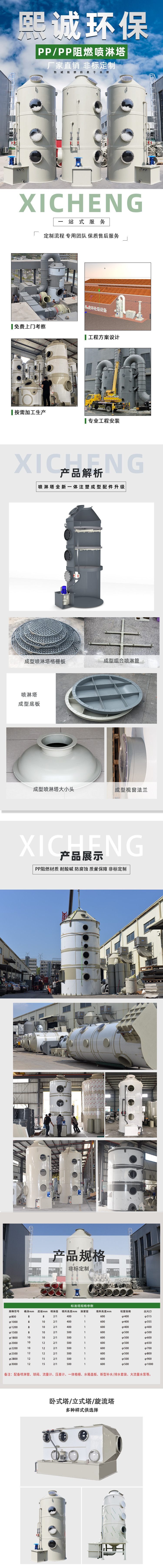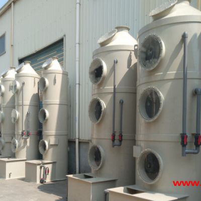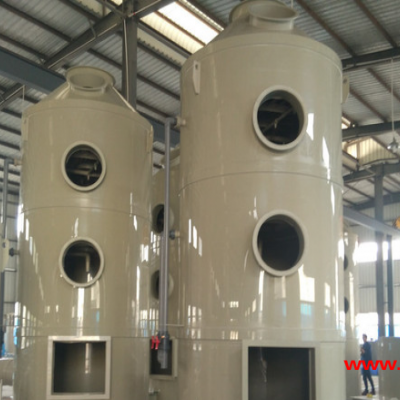 喷淋塔是湿式除尘器的一种,含尘气体与液体逆向接触,经过洗涤使尘粒与气体分离的除尘设备。它结构简单,主要由塔体,进气管,排气管,喷淋系统,循环水箱、除雾装置组成。