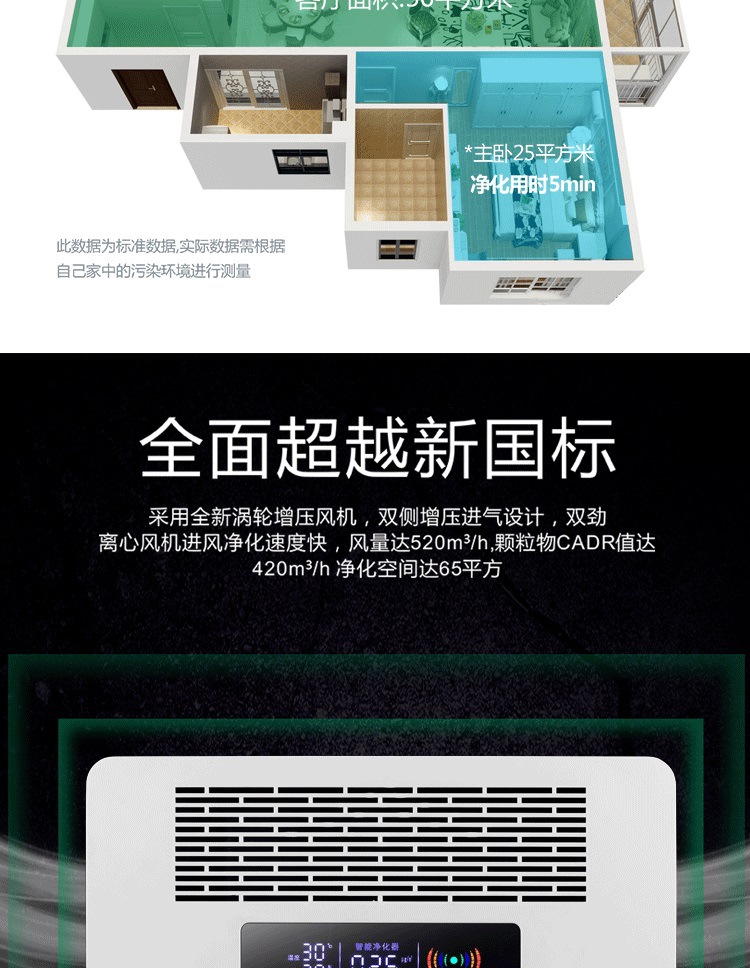 净而康JEK-KQ9KQ空气净化器家庭大功率空气净化器智能空气净化器