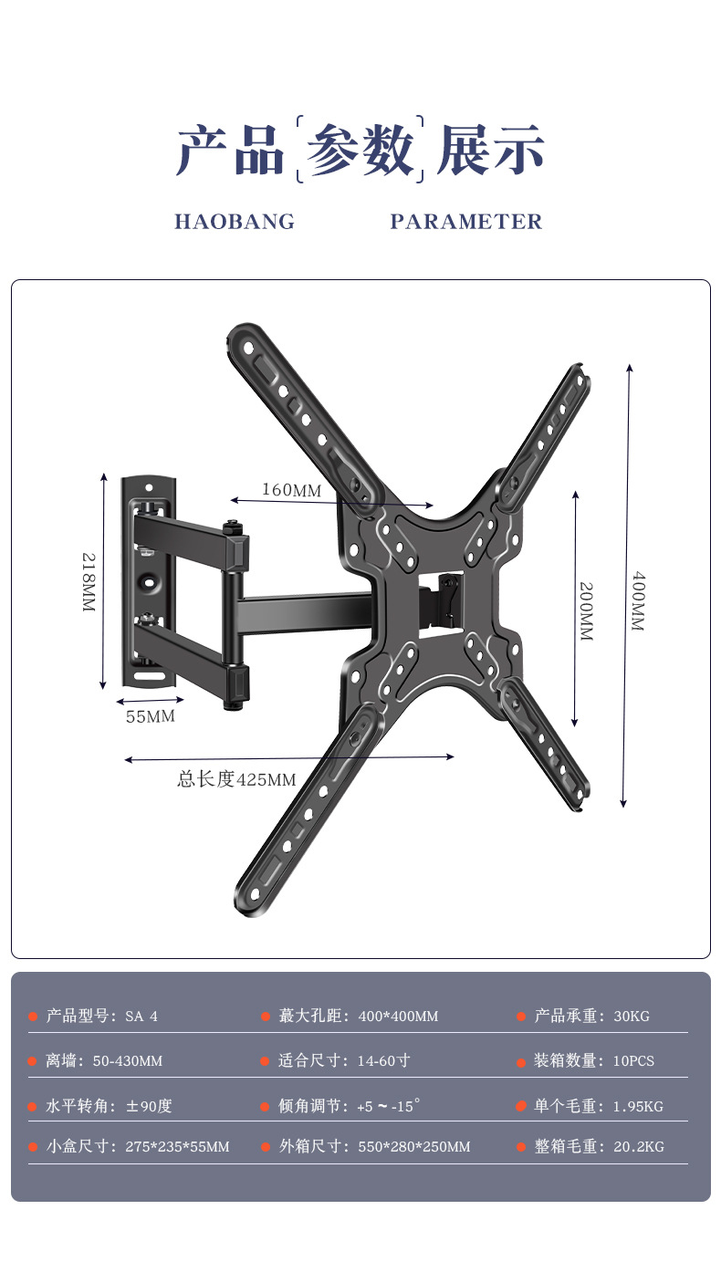 本网页所展示的有关【SA4三壁伸缩旋转挂架视频会议显示器支架液晶14-60寸电视机挂架_显示器支架_广州锋滨商贸有限公司】的信息/图片/参数等由简塑制品网的会员【广州锋滨商贸有限公司】提供,由简塑制品网会员【广州锋滨商贸有限公司】自行对信息/图片/参数等的真实性、准确性和合法性负责,本平台(本网站)仅提供展示服务,请谨慎交易,因交易而产生的法律关系及法律纠纷由您自行协商解决,本平台(本网站)对此不承担任何责任。您在本网页可以浏览【SA4三壁伸缩旋转挂架视频会议显示器支架液晶14-60寸电视机挂架_显示器支架_广州锋滨商贸有限公司】有关的信息/图片/价格等及提供【SA4三壁伸缩旋转挂架视频会议显示器支架液晶14-60寸电视机挂架_显示器支架_广州锋滨商贸有限公司】的商家公司简介、联系方式等信息。