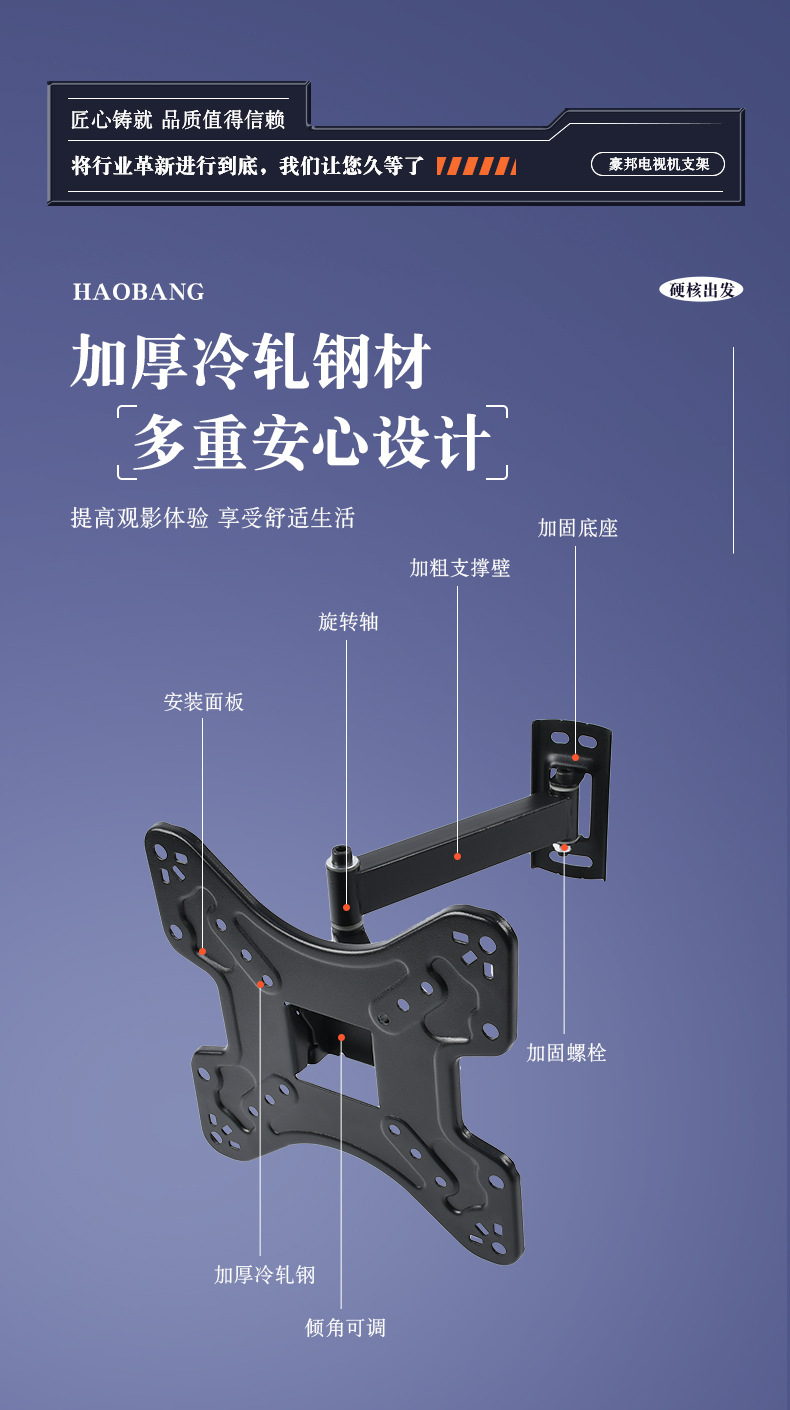 本网页所展示的有关【双壁摇摆180度旋转电视支架14-42寸显示器支架液晶电视伸缩挂架_显示器支架_广州锋滨商贸有限公司】的信息/图片/参数等由简塑制品网的会员【广州锋滨商贸有限公司】提供,由简塑制品网会员【广州锋滨商贸有限公司】自行对信息/图片/参数等的真实性、准确性和合法性负责,本平台(本网站)仅提供展示服务,请谨慎交易,因交易而产生的法律关系及法律纠纷由您自行协商解决,本平台(本网站)对此不承担任何责任。您在本网页可以浏览【双壁摇摆180度旋转电视支架14-42寸显示器支架液晶电视伸缩挂架_显示器支架_广州锋滨商贸有限公司】有关的信息/图片/价格等及提供【双壁摇摆180度旋转电视支架14-42寸显示器支架液晶电视伸缩挂架_显示器支架_广州锋滨商贸有限公司】的商家公司简介、联系方式等信息。