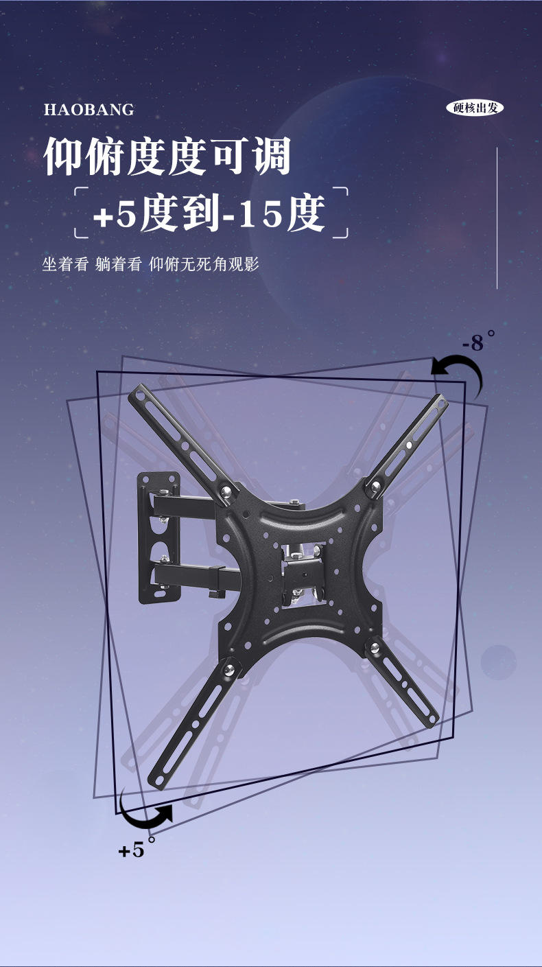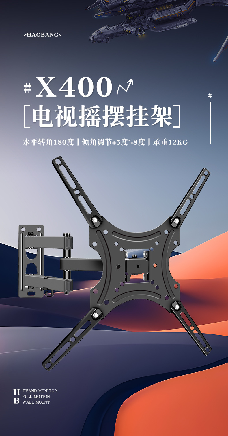 【供应】厂家定制电视机支架家用墙壁14-55寸旋转摇摆伸缩电视挂架X400 的推广海报