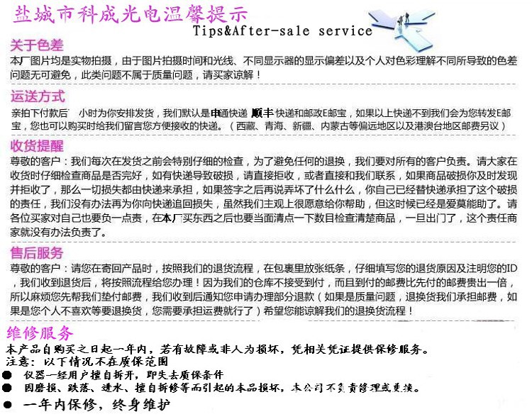 2、 长期不用时,请取出电池,以免电池变质损坏仪器。