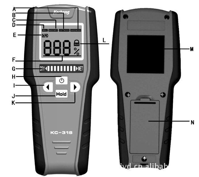 此水份仪主要是靠水份仪背面的感应板发射电磁波并接受由被测物体反射回的电磁波信号来测量水份含量的。